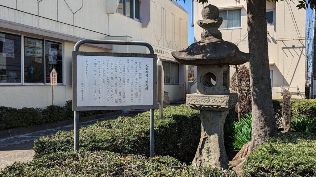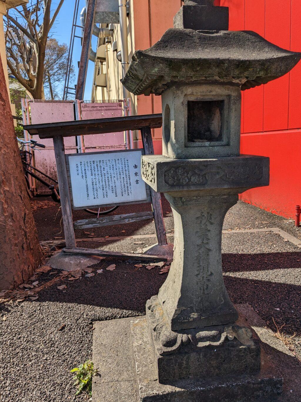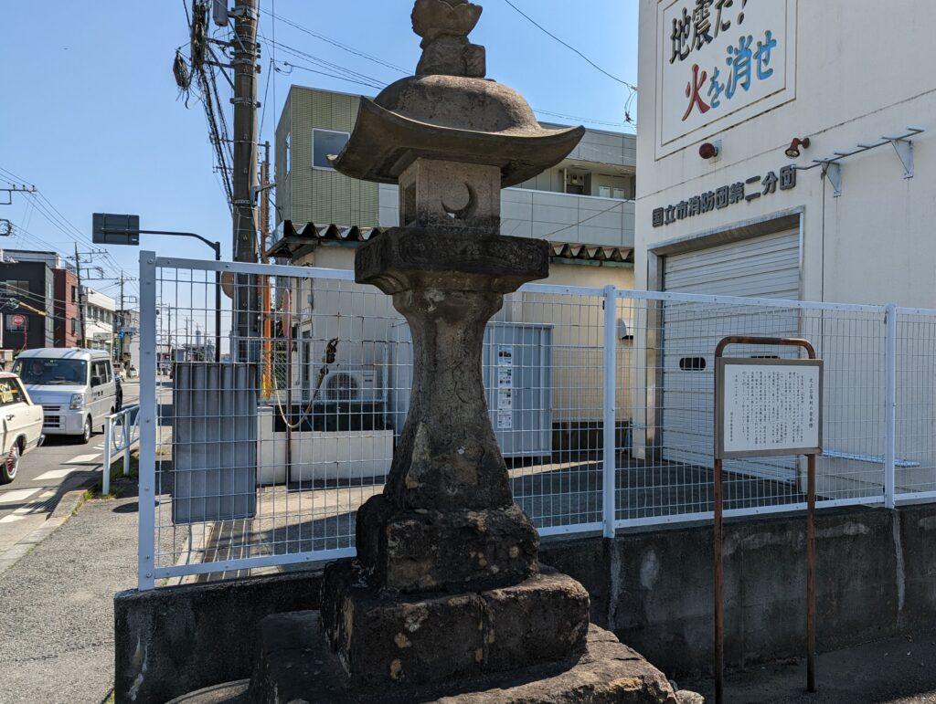 谷保天満宮を後にし、甲州街道を約1km進むと、再び常夜灯が現れます。国立市内には、少なくとも3つの常夜灯が残っているんですね。