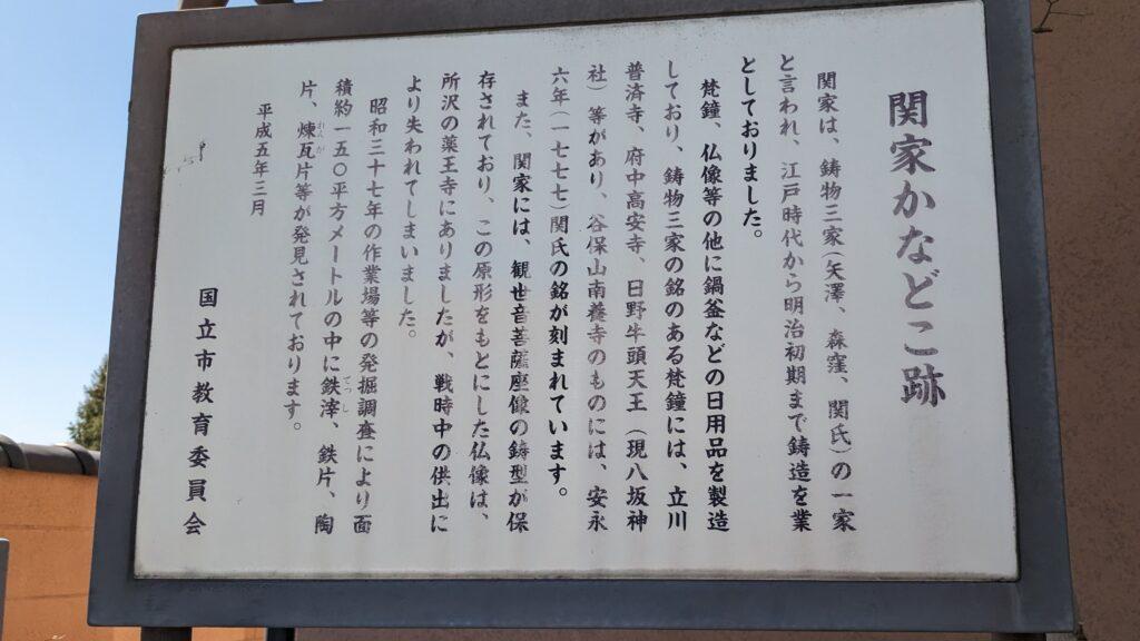 道の反対側にある案内板は、「関家かなどこ跡」を示しています。