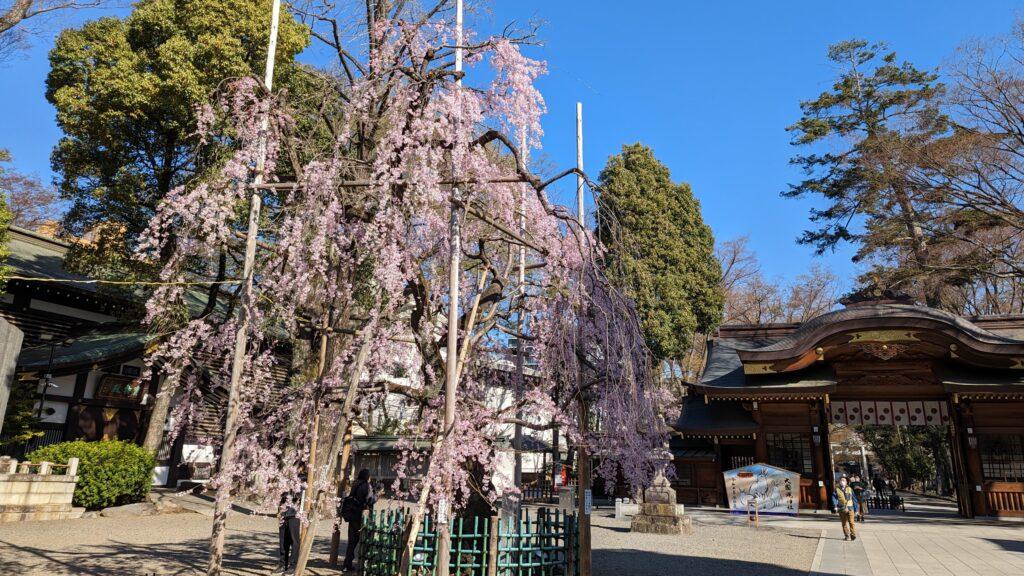 季節になると多くの人がこの枝垂桜を見に参拝に訪れます。夜のライトアップも見てみたいものです。