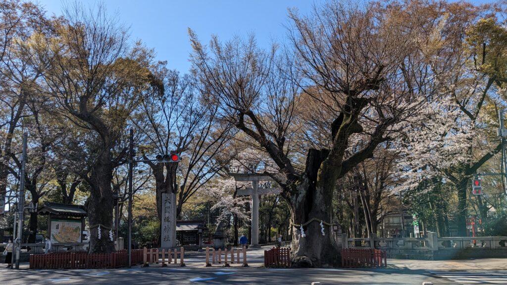 並木側から改めて大國魂神社を眺めると、大鳥居の手前に立つ樹齢900年という2本のご神木が、私たちの旅を見守ってくれているようです。