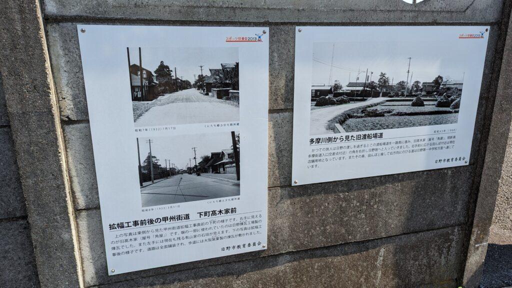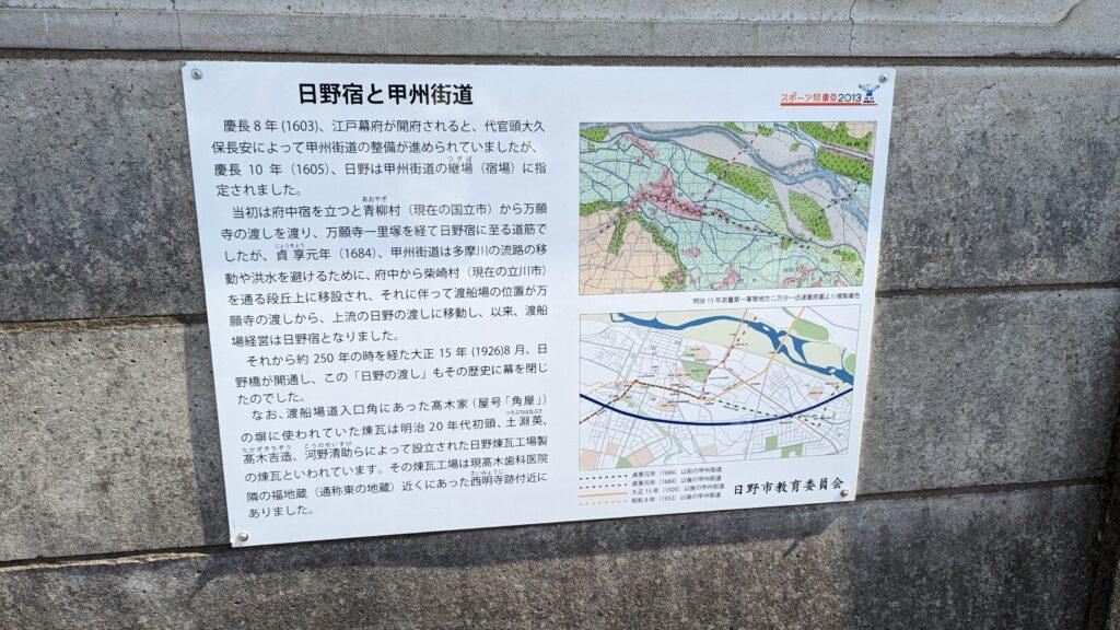 日野の街には歴史に関する案内板が至る所に掲示されています。これらの案内板を見ながら歩くことで、地域の歴史を深く理解することができますね。
