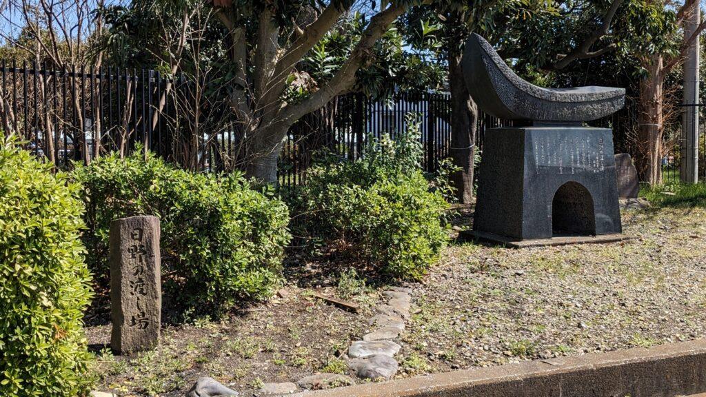 江戸時代、幕府は防衛上の理由から多摩川に橋を架けることを禁じていたため、旅人たちは渡し船で川を渡っていました。今は日野橋が立っていますが、かつてはここで船を待つ人々の賑わいがあったのでしょう。日野橋の完成に伴い、この渡しは廃止されました。