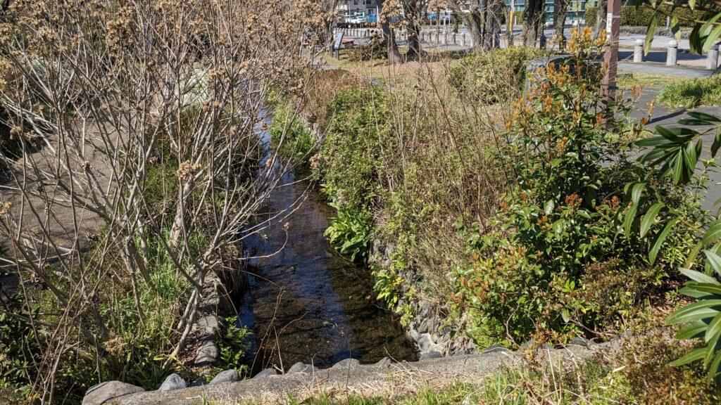 大きな体育館の脇を流れる「根川緑道」は、緑豊かで心が安らぐ空間です。立川段丘の崖線から湧き出る水を集めたという小川は、水がとても澄んでいてきれいですね。