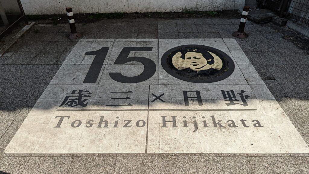日野駅前で見つけたのは、2019年に土方歳三の没後150年を記念して作られたという、デザインマンホール!新選組と土方歳三への地域の深い愛が、こんな素敵な形で表現されているのですね。思わず写真を撮ってしまいました。