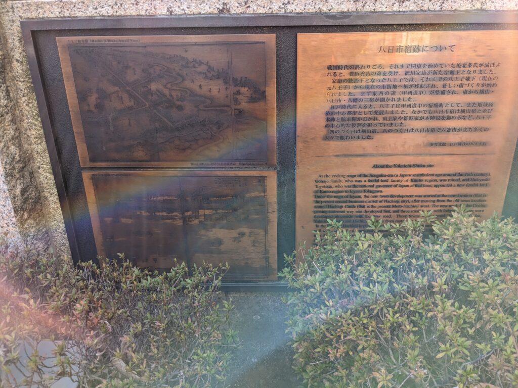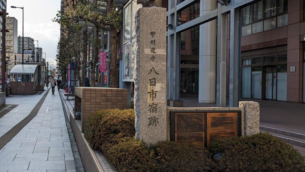 八王子駅前の賑わいを通り過ぎて200mほど進むと、「八日市宿跡」の標識が。昔も今も、このエリアが八王子の賑わいの中心だったことを教えてくれます。
