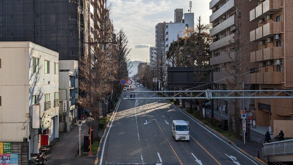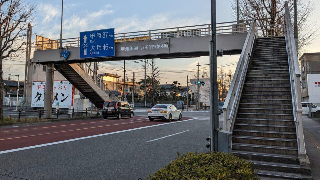 追分町の交差点にある歩道橋から、高尾方面を眺めると、広がる風景が見渡せます。