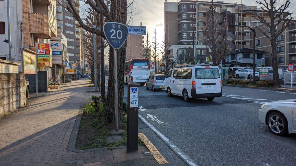 甲州街道の中間地点である甲府まで、残り87kmです。この旅はまだ2日目に過ぎず、始まったばかりであることを改めて実感します。