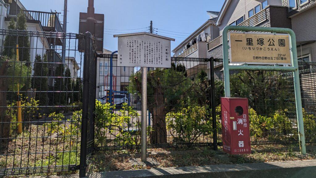 一里塚跡の近くには、その名も「一里塚公園」が。小さな公園ですが、歴史の節目を記念するように設けられており、しばし立ち寄って休憩するのにぴったりです。この公園を過ぎると、いよいよ道は八王子市へと入ります。