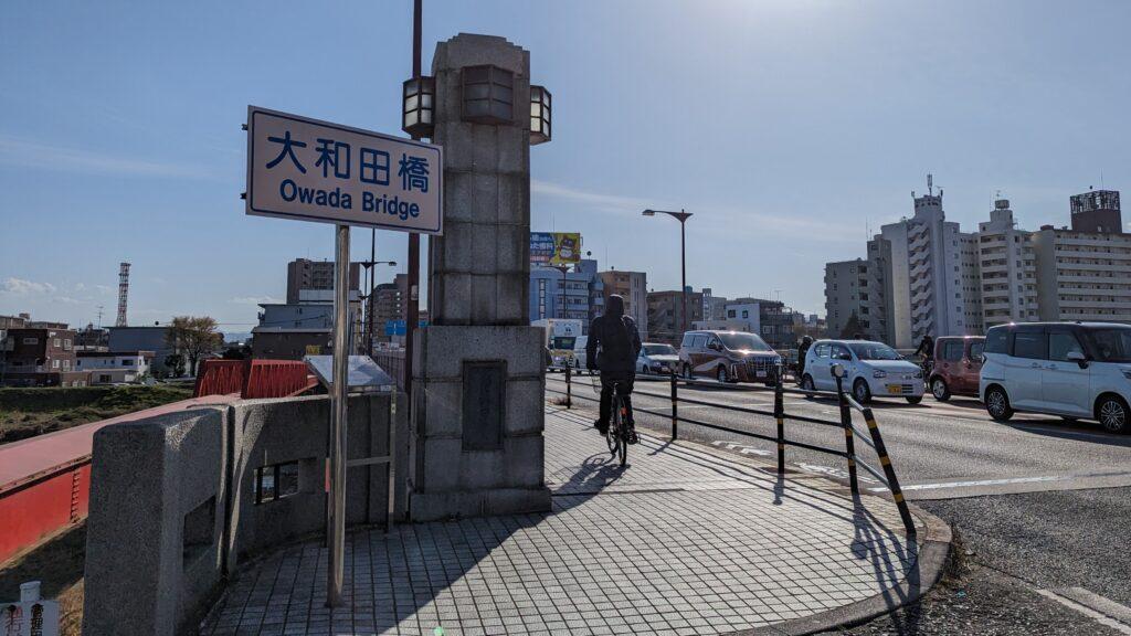 浅川に架かる大和田橋を渡ります。ここは、街道歩きとは少し異なる、近代の悲しい歴史を伝える場所。橋の欄干には、八王子空襲の際に投下された焼夷弾の跡が生々しく残されているんです。
