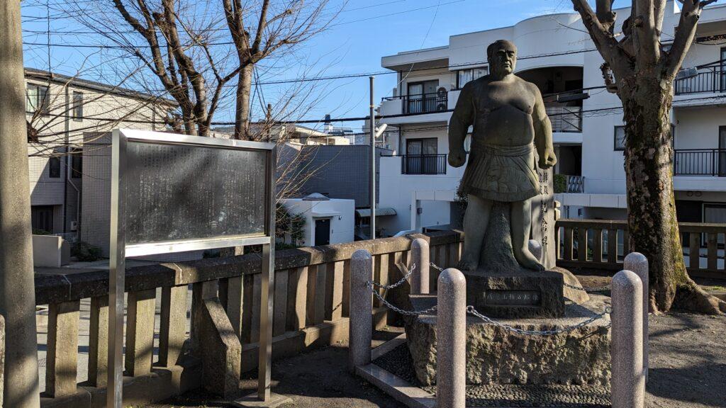 公園の一角に位置する永福稲荷神社の境内には石像が建てられています。この石像は「八光山権五郎」と呼ばれる人物で、江戸時代の非常に力強い力士だったそうです。