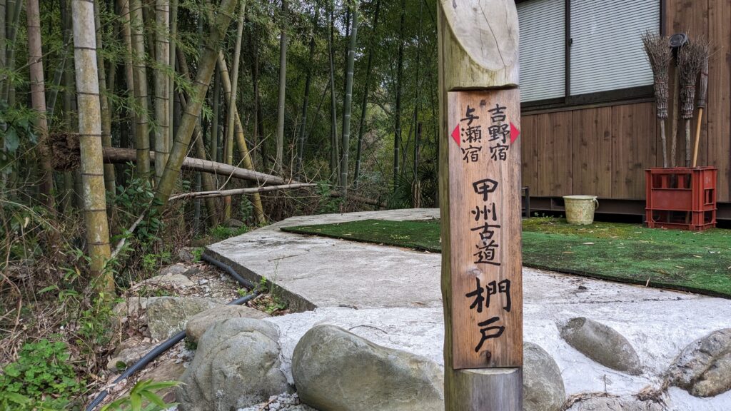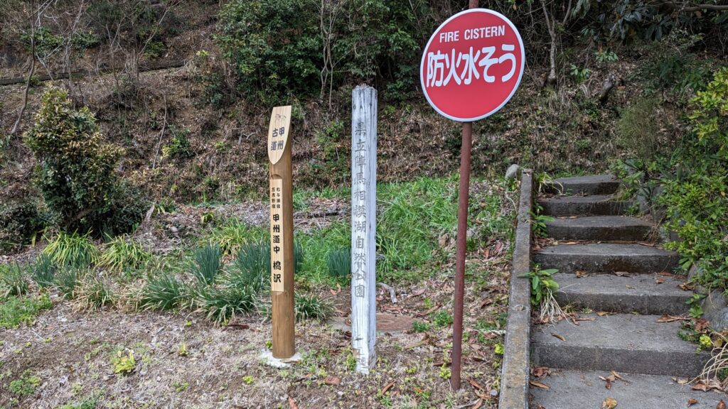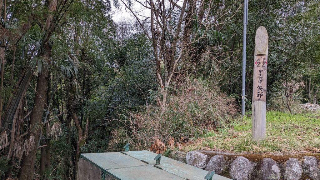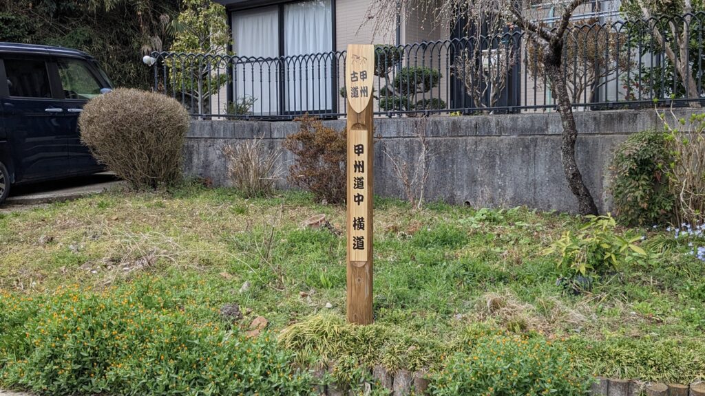 坂を登り切ったところに「古道甲州 甲州道中 横道」の標柱があります。
