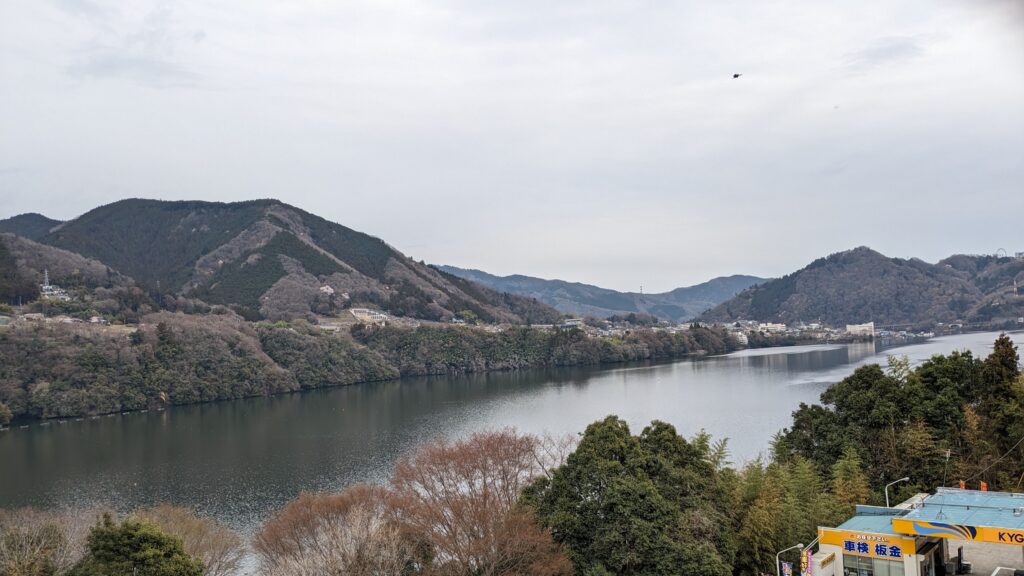 相模湖インター入口の上から眺める相模湖の景色はとてもきれいで、広がる眺望が疲れた体を少し癒してくれます。