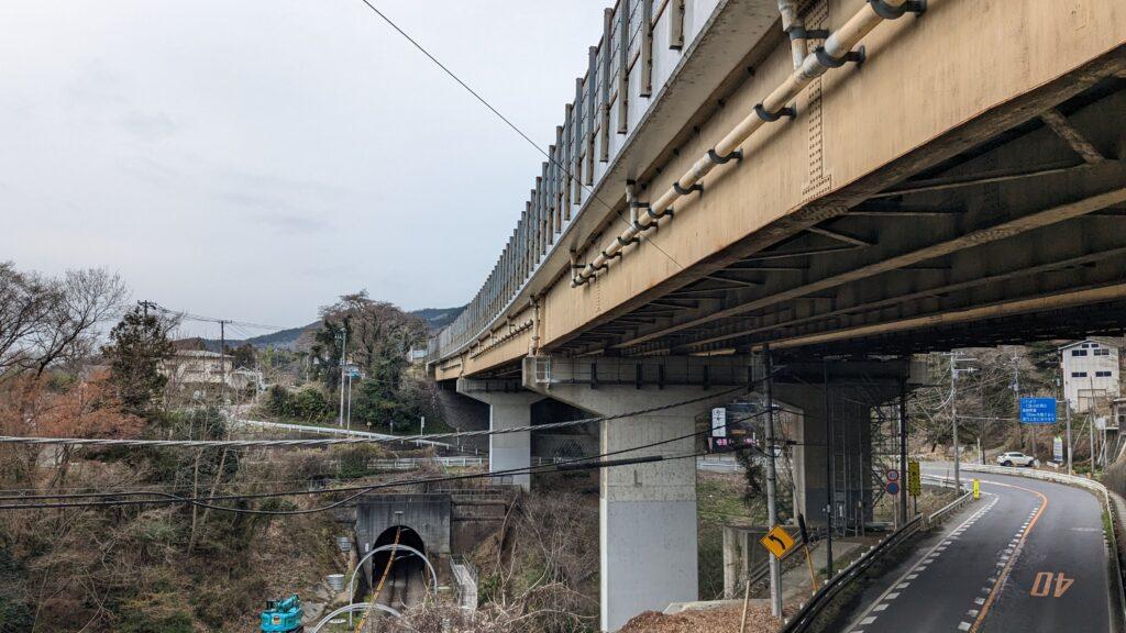 道が細くなり不安を感じながらも進んでいくと、中央道の高架橋の下を通る歩道に繋がりました。その後、道は蛇行しながらさらに2度中央道をくぐります。