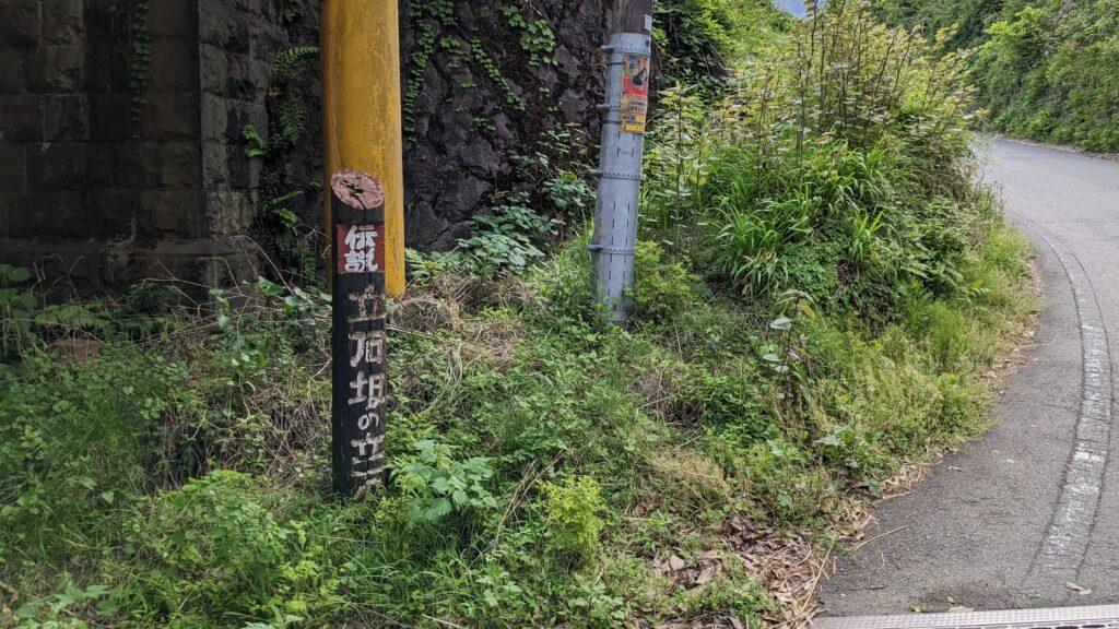 中央線の架橋をくぐったたもとに「立石坂の立石」の標柱が立っています。