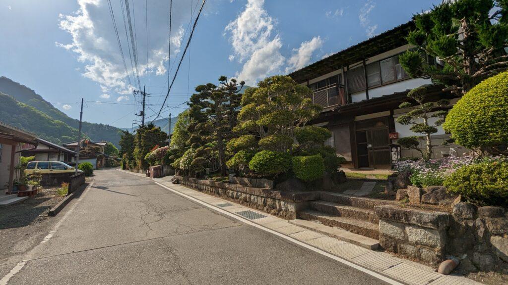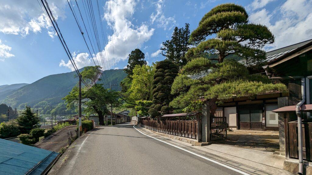 中初狩宿の街道筋は、趣きのある家々が並んでおり、昔ながらの雰囲気が漂っています。