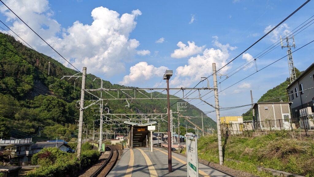 「みどりや」のすぐ目の前には「笹子駅」が見えています。