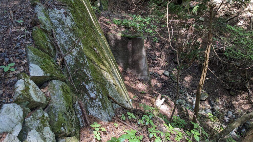 山道を登っていくと石垣が見えてきます。