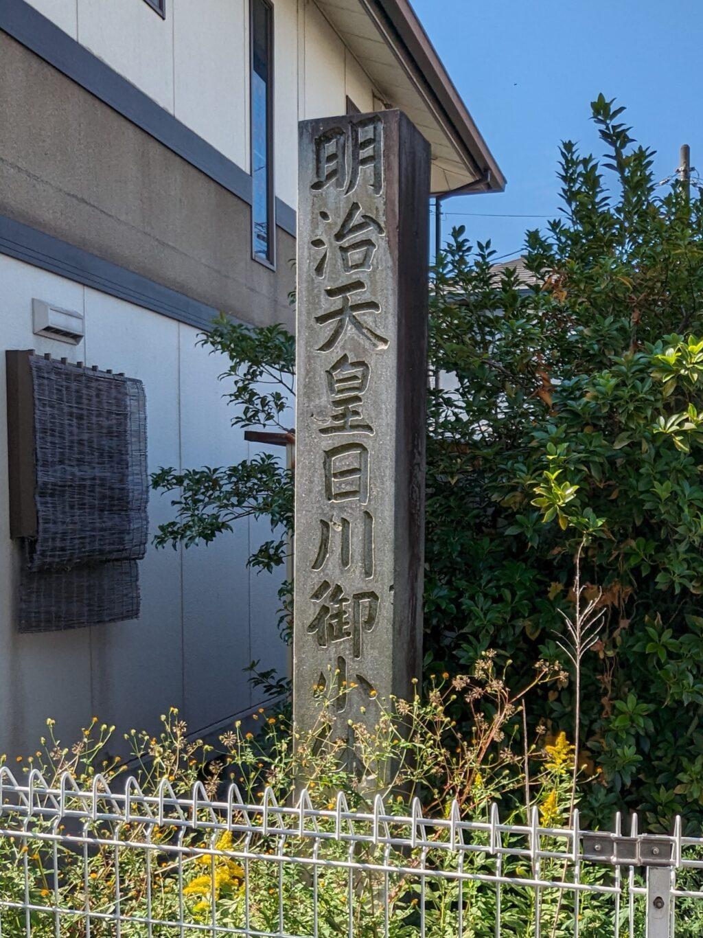 その先しばらく歩いた、コンビニの向かい、駐在所の隣の敷地に「明治天皇休憩跡」の石碑がありました。少し分かり難いところにあります。文字も街道側ではなく駐在所側に向いていますし…