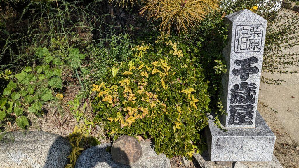 少し歩を進めると、道沿いに「千歳屋」と刻まれた石碑を見つけました。かつてここに旅籠屋があった跡です。