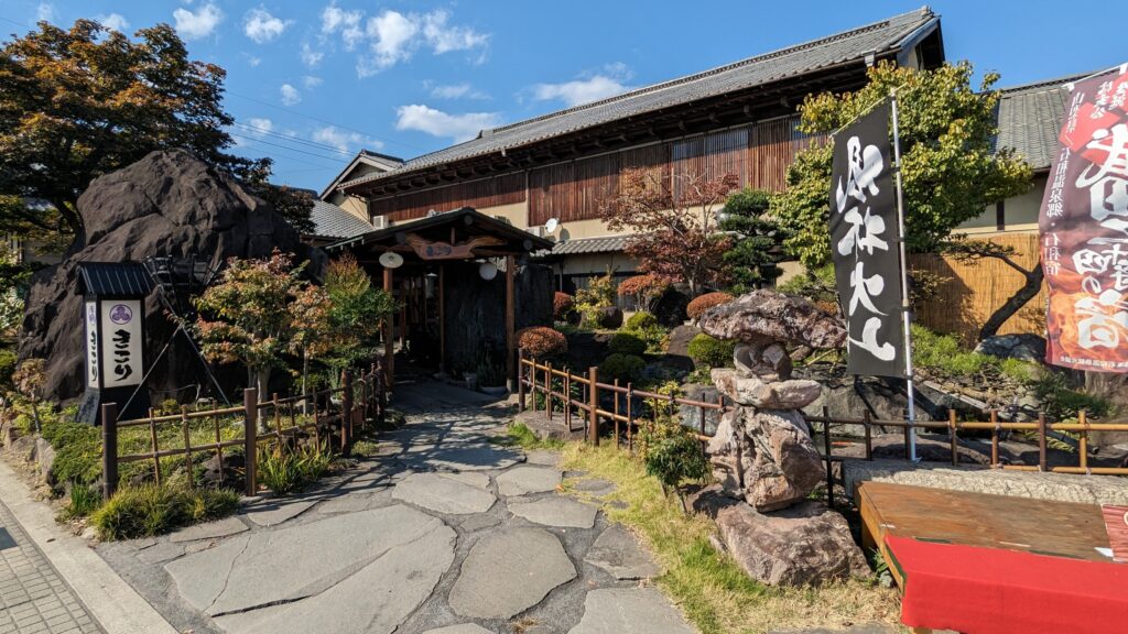 ルートからほんの200mほど離れた「木創りの宿きこり」に立ち寄ります。