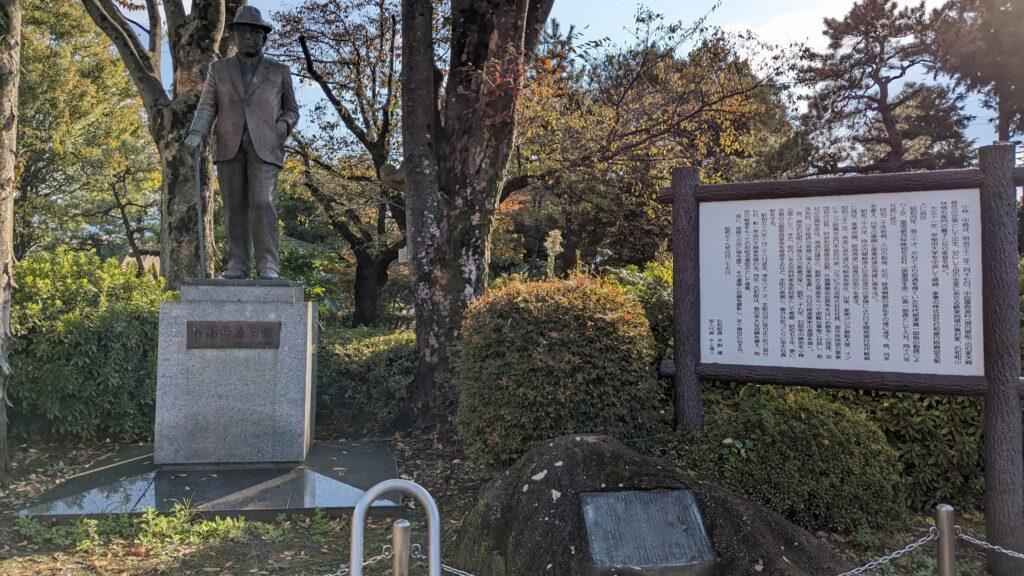 足湯のある公園は「小林公園」と言い「小林中」の銅像が立っています。