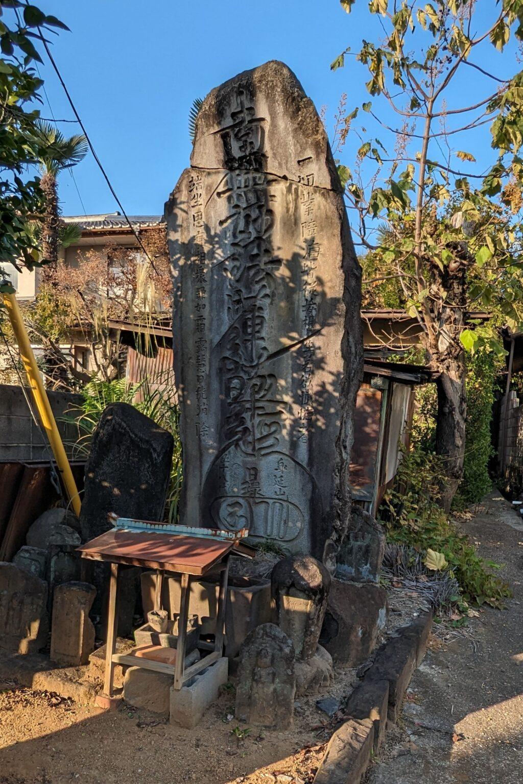交差点を過ぎたところに「南無妙法蓮華経」と刻まれた供養碑があります。