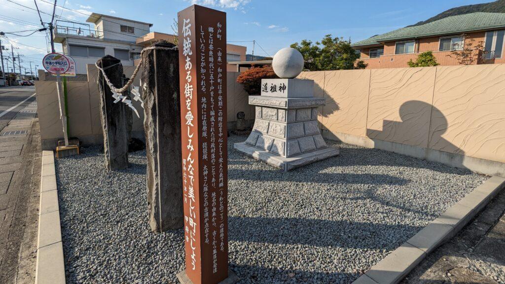 立派な道祖神がありました。傍らに「和戸町」由来の標柱も建っていました。