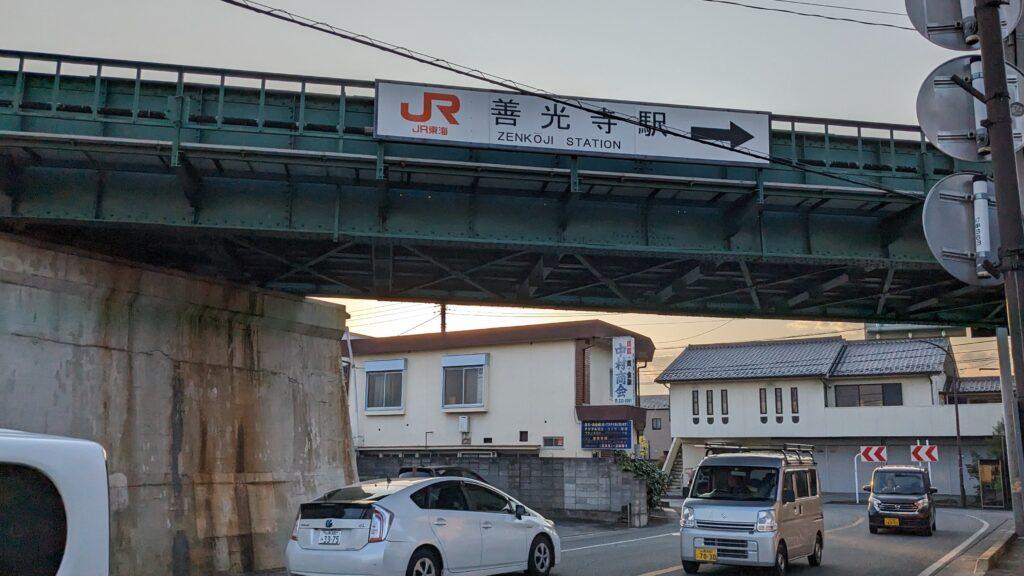 善光寺交差点を過ぎると身延線ガードが現れます。このたあたりに当時「木戸」が置かれていたそうです。ここから「甲府柳町宿」になります。