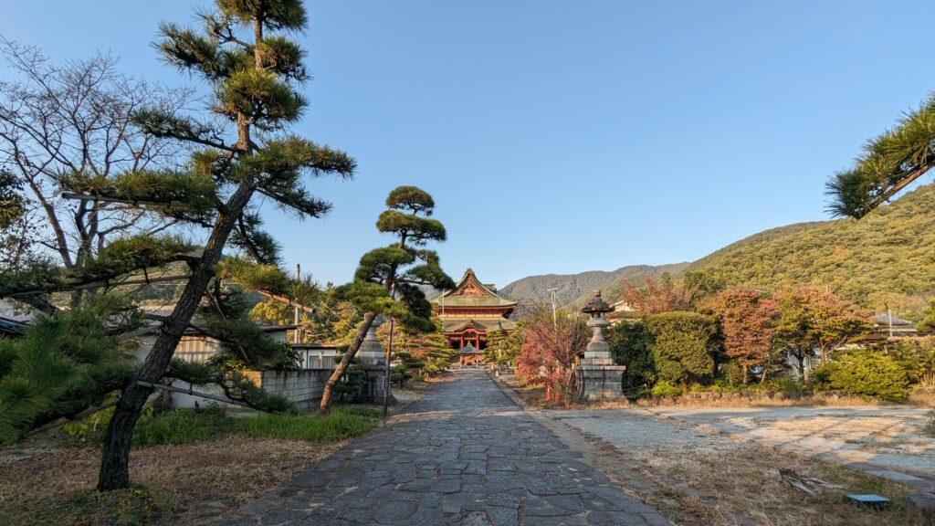 山門を抜けると、石畳の参道がまっすぐ伸びていて、その先には立派な本堂が見えます。