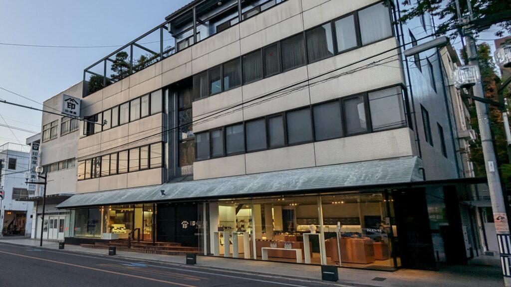 甲府市街地に近づき、魚町通りと交差する少し手前に「印傳屋」があります。