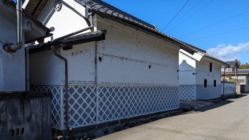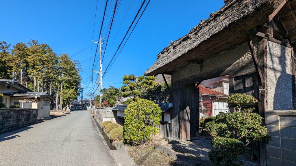 しばらく静かな道を歩き続けると、祖母石の集落に入ります。ここでは、なまこ壁や茅葺き屋根の武家門を持つ家々が立ち並び、昔ながらの風情が色濃く残る道を楽しむことができます。