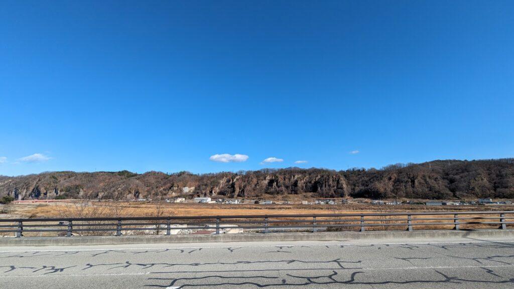 少し歩いて「戸沢橋」から見えた七里岩です。