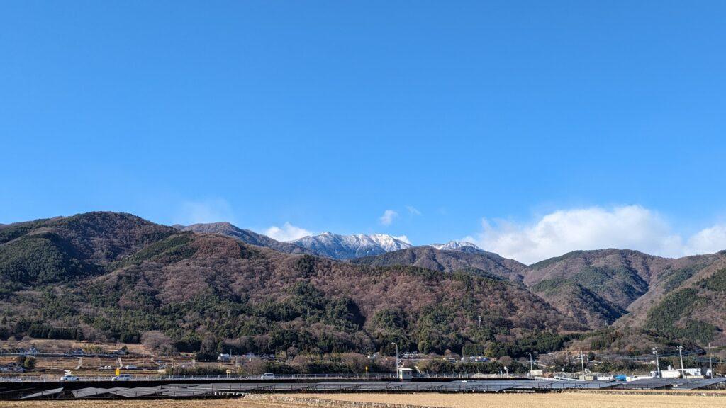 徳島堰沿いの高台から、遠くにそびえる山々を一望できました。まさに息をのむような美しい景色でした。