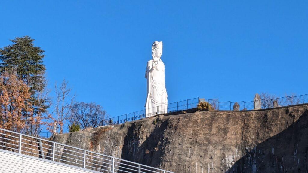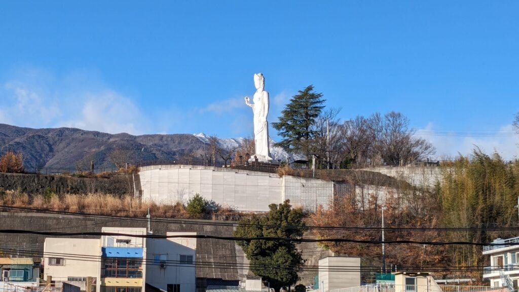 甲州街道を進むと平和観音様が現れました。旅の安全を祈り、観音様に見守っていてもらいましょう。