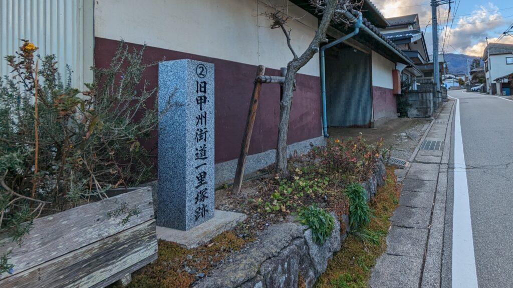 少し進んだ左手に「旧甲州街道一里塚跡」の石碑がありました。