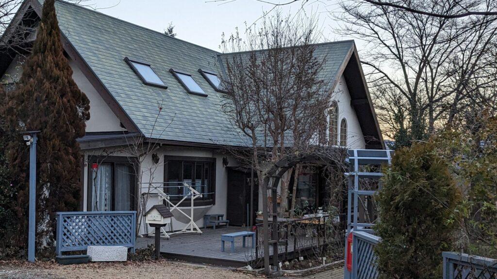 「道の駅はくしゅう」の裏手にある登り坂を進むこと約20分。ようやく今夜の宿泊場所である「ヴィラテックハウス花白州」に到着しました。明るいうちに着けてホッとひと安心。
