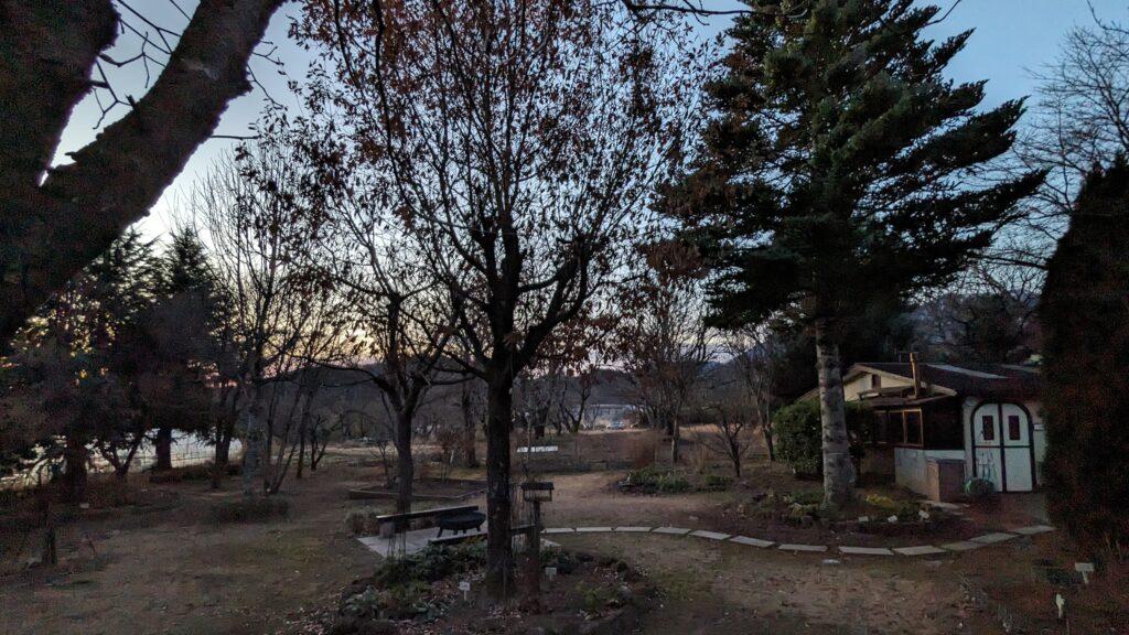客室は広々としていて、バストイレ付き、床暖房まで完備。さらに清掃が行き届いていて、とても快適に過ごせました。窓からはお庭を一望できる造りになっており、今回の訪問では既に真っ暗な年の瀬の景色でしたが、春先には緑が溢れる美しい庭を楽しむことができるのでしょう。