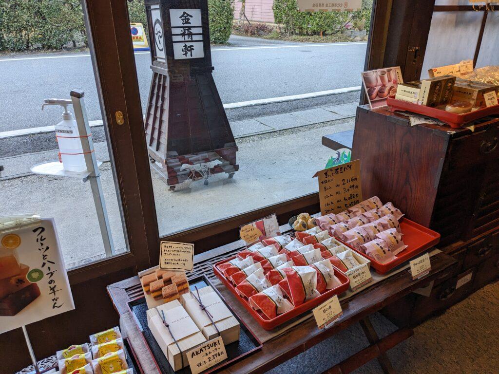 そしてそのすぐ先、先ほど食事をした「レストラン臺眠」の正面には、老舗和菓子店「金精軒」です。
