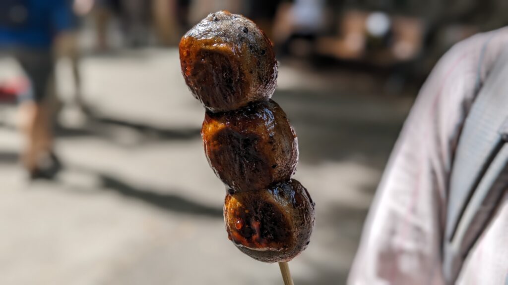 先ほど天狗焼を食べたばかりですが、香ばしく焼かれたごまだんごは、やはり別腹です。
