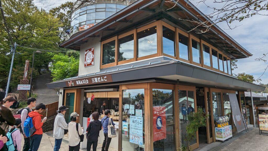 店頭には「ごまだんご」ののぼりがはためいて、坂を登り終えたところで、みなさん一服です。