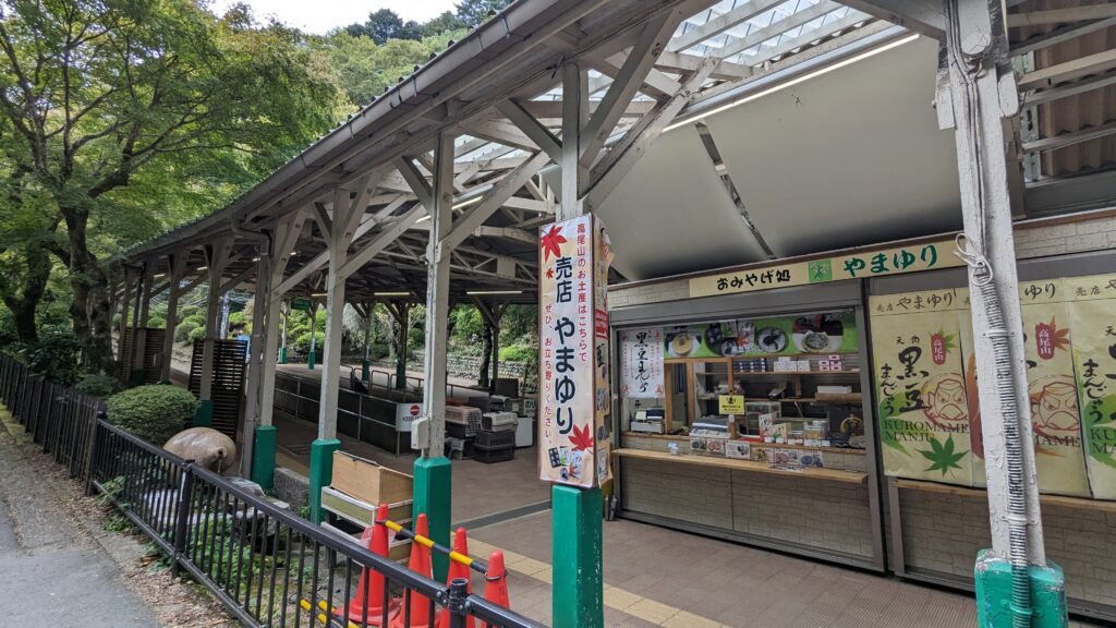 舗装された道に出てから少し下っていくと清滝駅「ケーブルカー乗り場」が見えてきます。