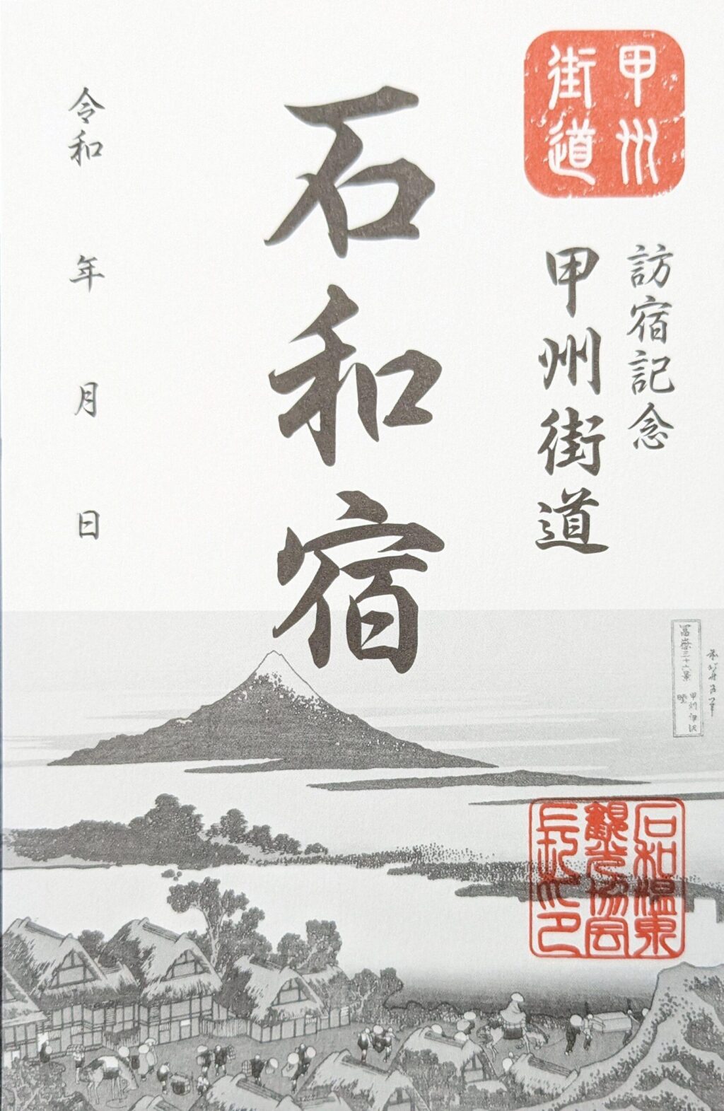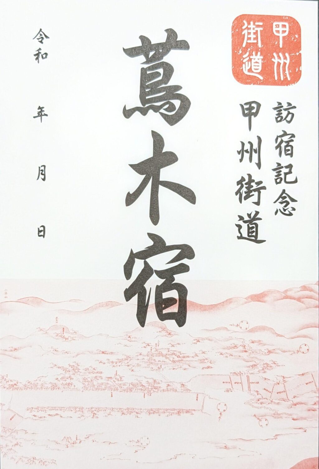 御宿場印とは、宿場名と記念の角印が美しくあしらわれた、いわば「訪宿証」です。神社仏閣の「御朱印」やお城の「御城印」と同じように、実際にその宿場を訪れた人だけが手にできる特別な一枚です。