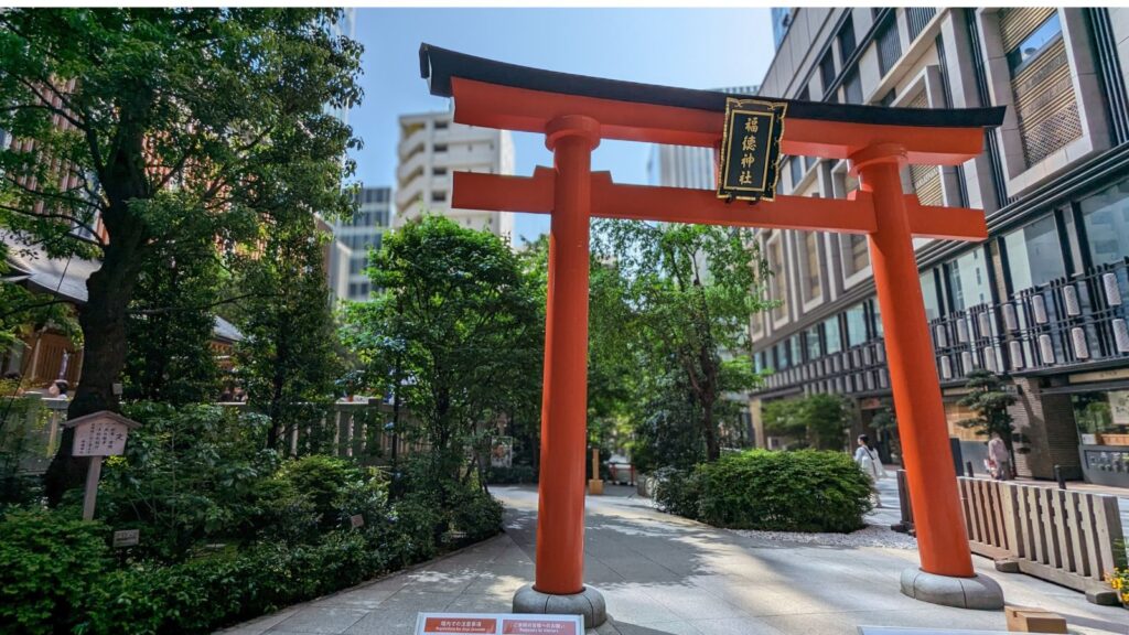 ビルに囲まれた中に、緑に囲まれた「福徳神社」が現れます。