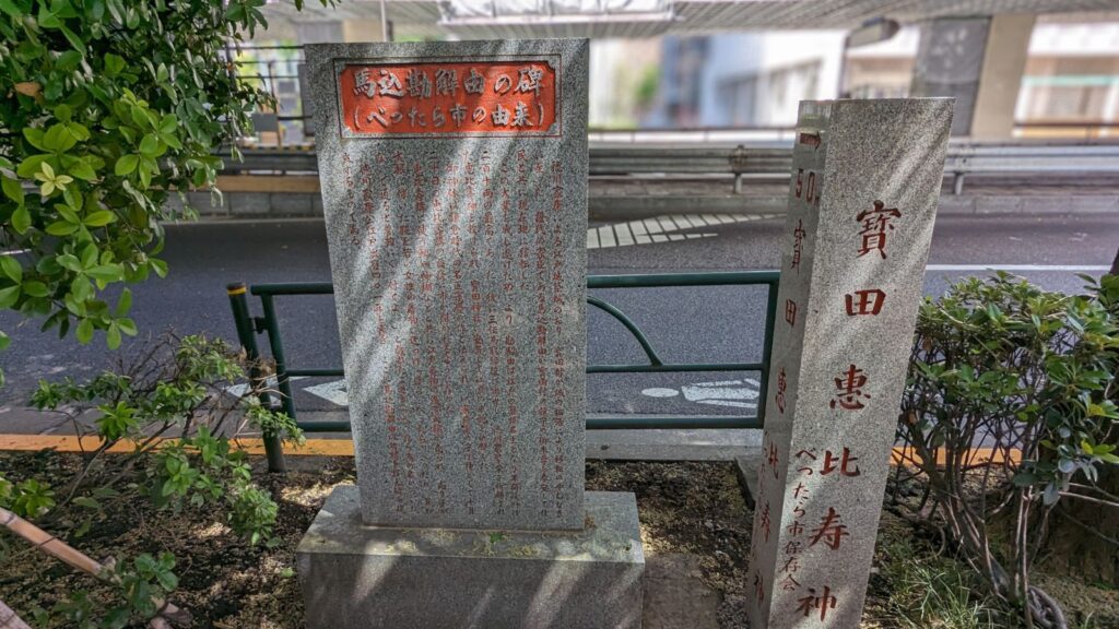 「馬込勘解由碑」から「馬込勘解由屋敷跡地」の間にある神社「宝田恵比寿神社」です。