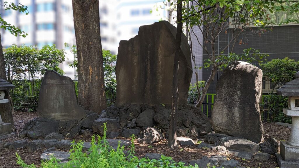 刑場跡の目の前には「十思公園」があります。時を越えて、憩いの場として生まれ変わったんですね。この公園には、刑場の一部として歴史的な史跡が残されていました。