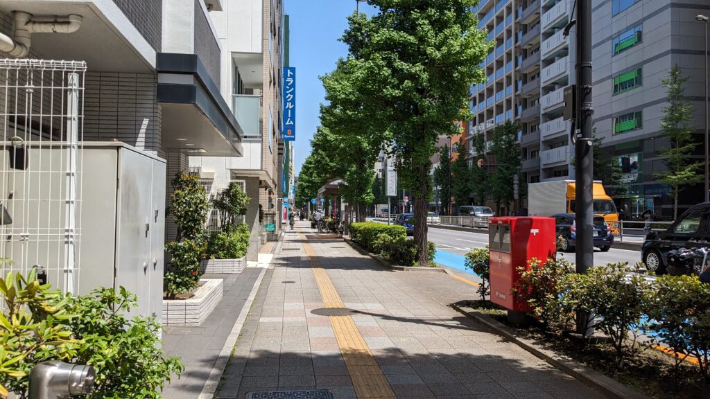 その後6号線(江戸通り)に沿って歩きます。ビルに挟まれた大通りが続きます。