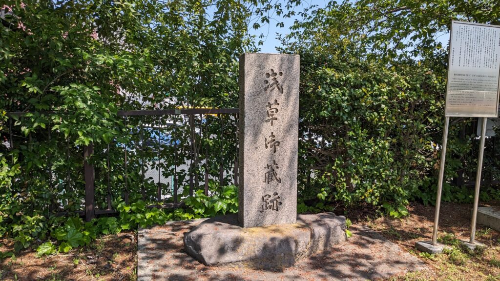 緩やかな坂道を登って「蔵前橋」の手前に「浅草御蔵跡」碑があります。