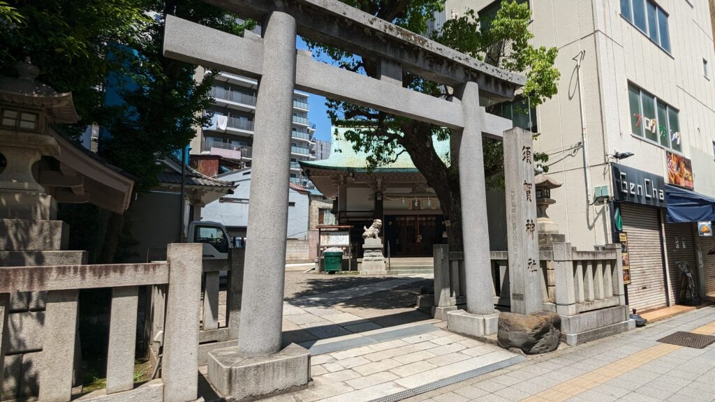 須賀橋交番前交差点を東に少し進んだ場所に「第六天榊神社」があります。