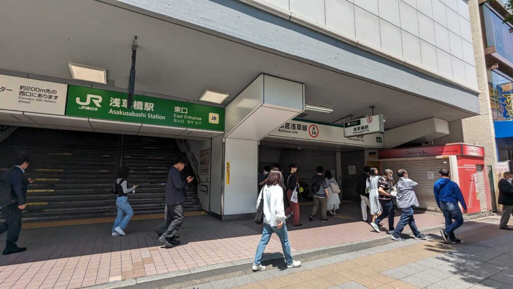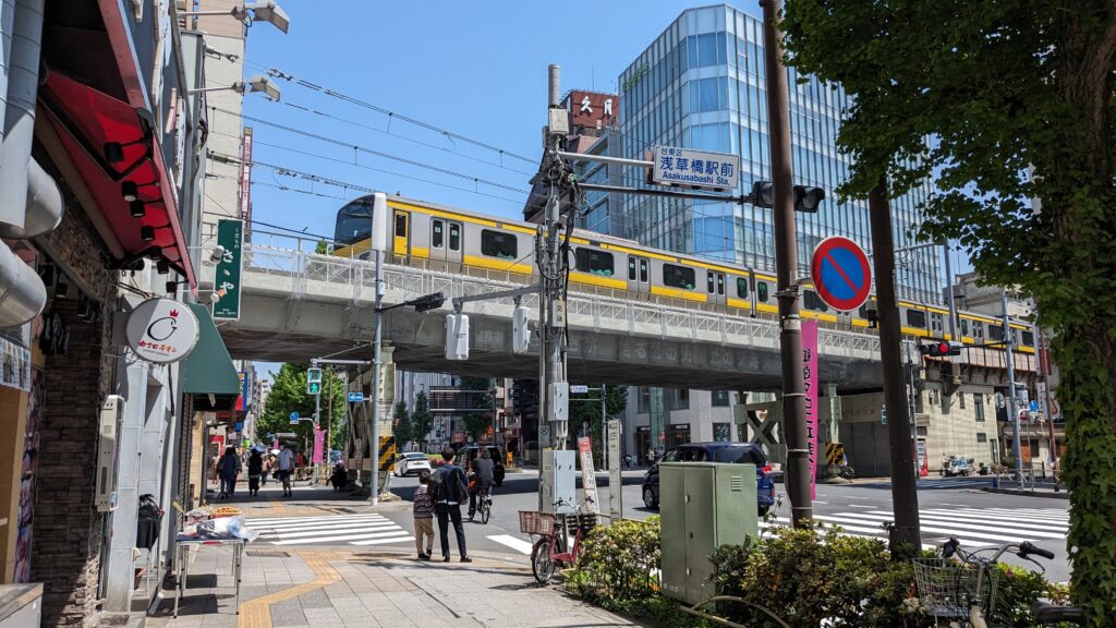 歩き始めてすぐに「浅草橋駅」が現れます。