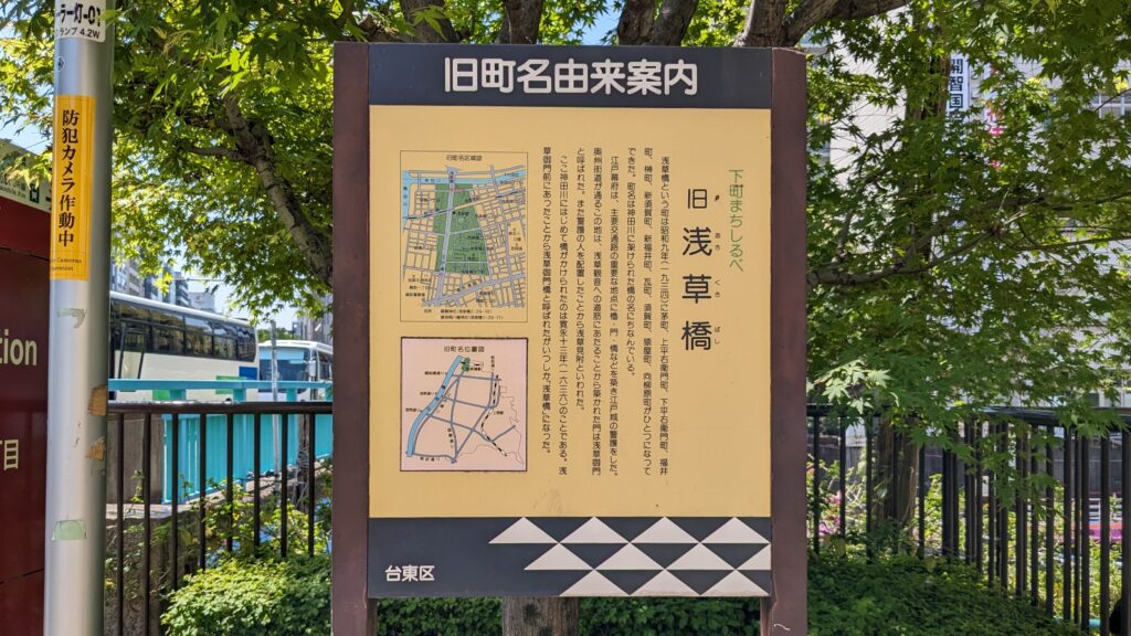 橋を渡ったところには「浅草橋」名前の由来案内と「浅草見附跡」石碑があります。